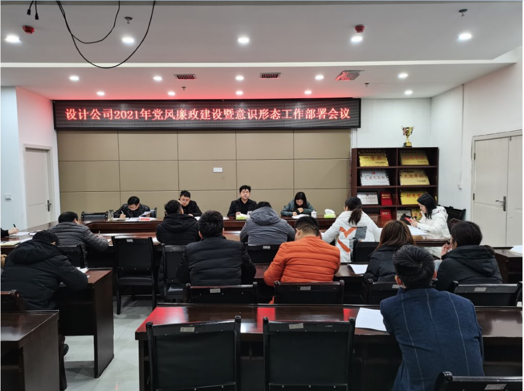 会上刘兴连同志组织学习了《中共中央政治局会议—关于研究部署2021年党风廉政建设和反腐败工作》《市委办关于印发<铜仁市意识形态工作追责问责办法(试行)>的通知》《市纪委<关于5起违反中央八项规定精神问题的通报>》等文件精神。总工程师、分管安全工作领导付昌金同志传达学习了《中华人民共和国民法典》《消防法》《禁毒法》等文件精神,并对2021年度安全工作作了安排部署。